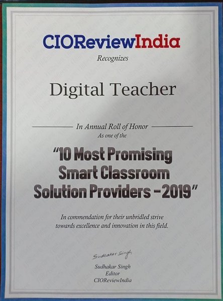 We are happy to announce that our Digital Teacher is recognized by Business Magazine – “CIO Review India” and it’s published cover page story on Digital Teacher https://www.cioreviewindia.com/magazines/smart-classroom-special-june-2019/
